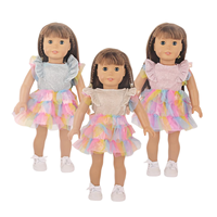 Gran oferta, ropa de muñeca de niña de 18 pulgadas, nuevo estilo, vestido de juguete de dibujos animados con nudo de lazo, hilo de encaje brillante, Material plástico para Decoración